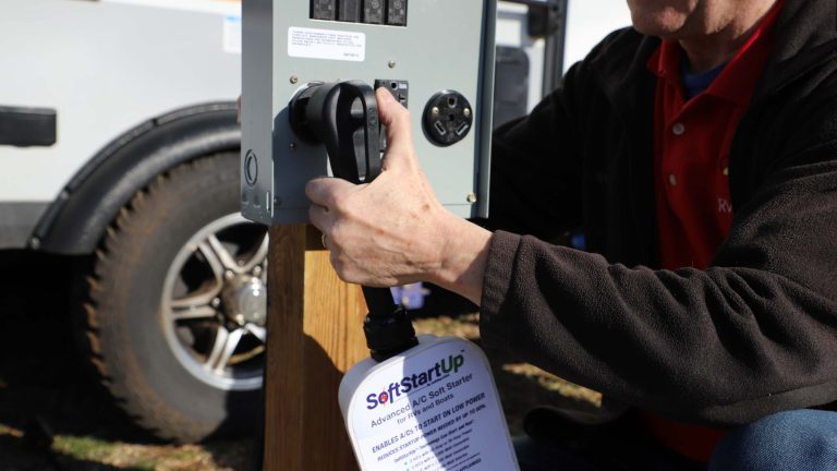 The SoftStartUp™ also connects directly to popular surge protector brands used at campgrounds.